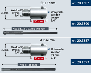 Изготовлены по специальной технологии со сложной многоступенчатой геометрией кромок. Оснащены твердосплавными пластинами на режущей части. Имеет комбинированный хвостовик типа Universal/Weldon 19. Используется на магнитных и стационарных сверлильных станках.