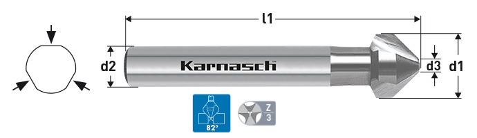 Коническая зенковка 82° DIN 335 из стали HSS-XE, трёхгранный хвостовик