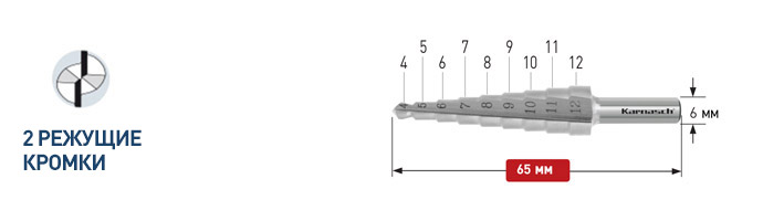 Ступенчатое сверло, диаметр 4-12 мм, двухзаходное арт. 21.3030
