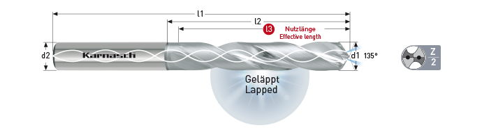 Изготовлена из карбид-вольфрамного сплава. Имеет цилиндрический хвостовик. Определяется высокой размерной точностью и стабильностью формы (отклонение диаметра фрезы от 0/-0.010 мм, радиуса в пределах +/-0.003 мм). Предназначена для больших боковых нагрузок и высоких скоростей обработки. Применяется для чистовой обработки материала.